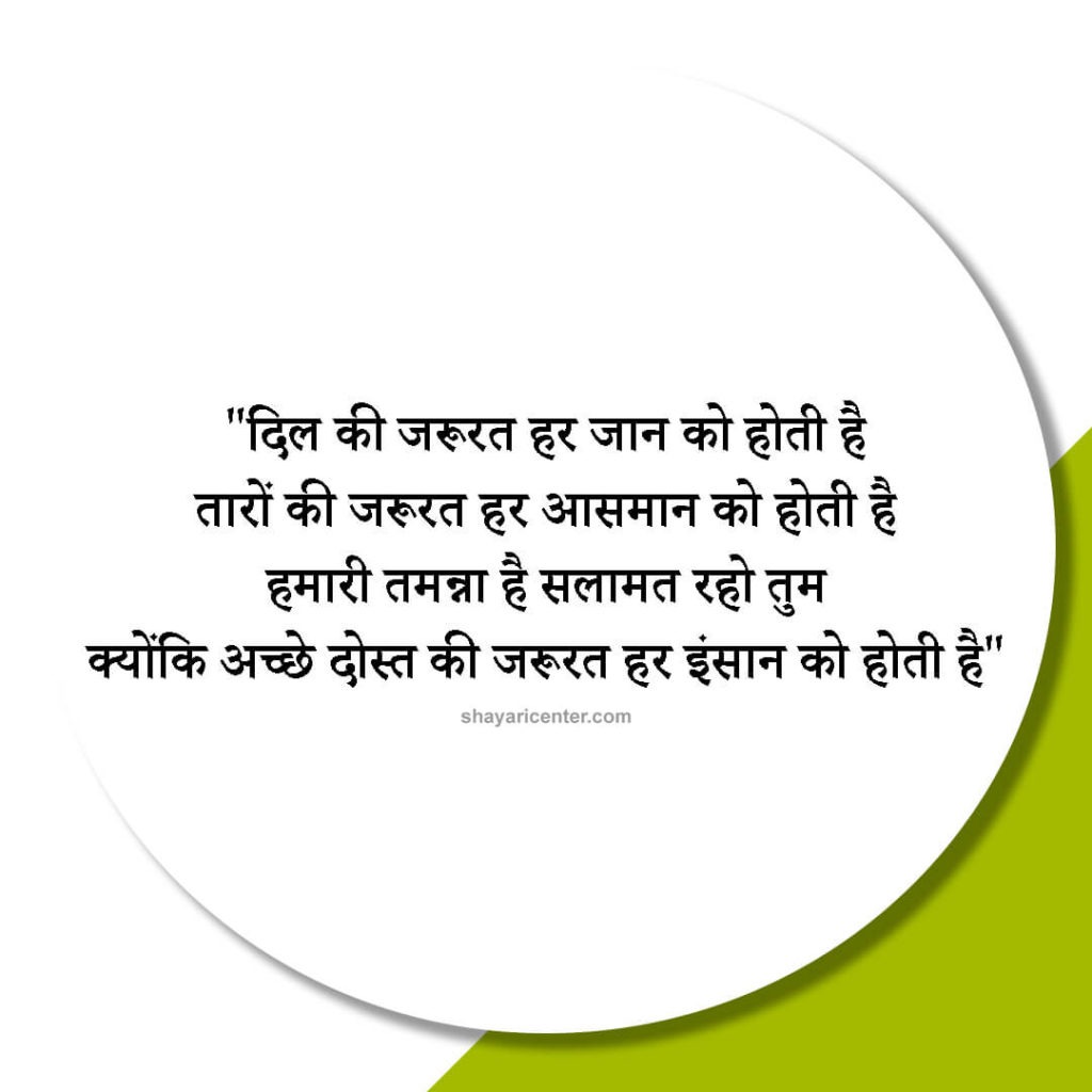 दिल की जरूरत हर जान को होती है तारों की जरूरत हर आसमान को होती है हमारी तमन्ना है सलामत रहो तुम क्योंकि अच्छे दोस्त की जरूरत हर इंसान को होती है
