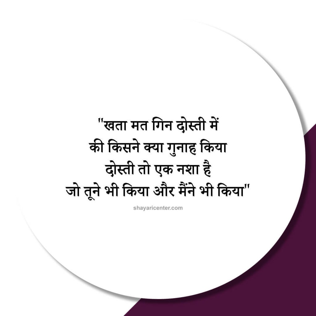 खता मत गिन दोस्ती में की किसने क्या गुनाह किया दोस्ती तो एक नशा है जो तूने भी किया और मैंने भी किया
