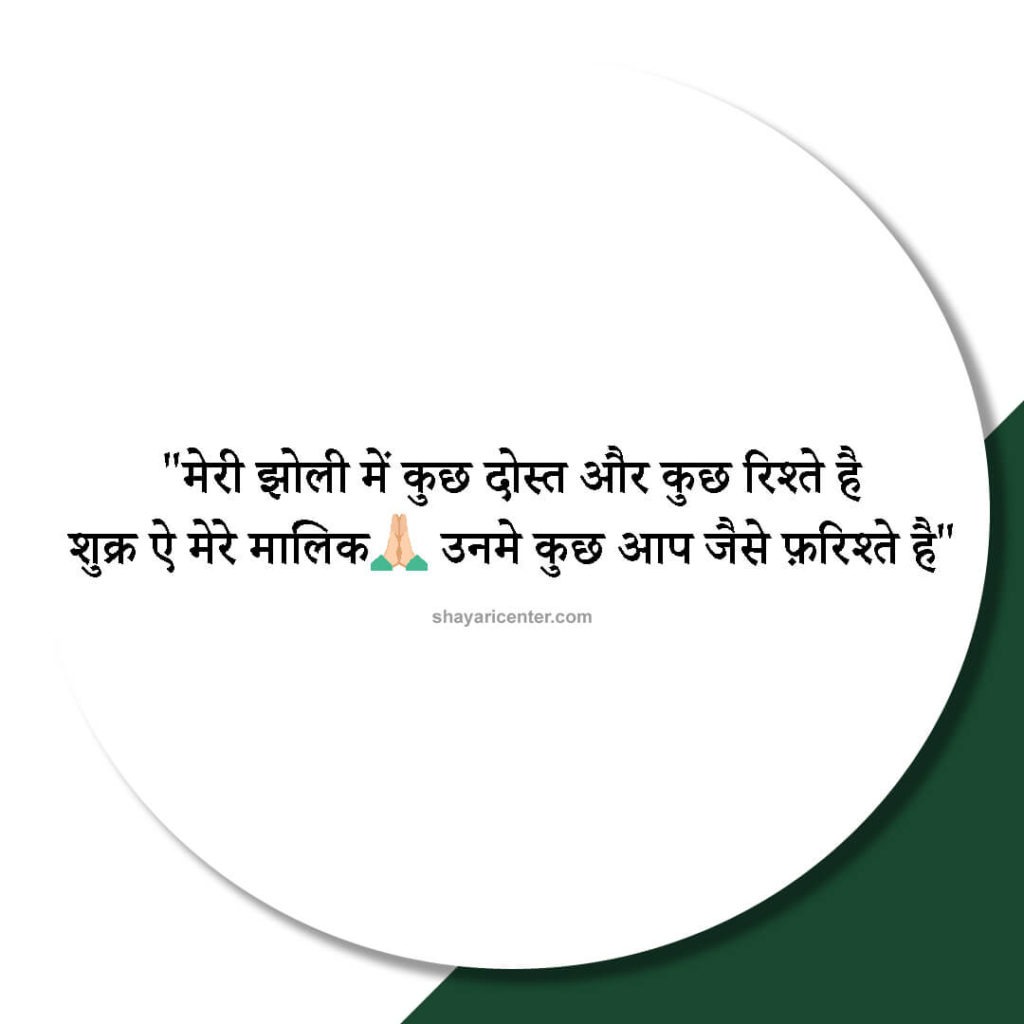 मेरी झोली में कुछ दोस्त और कुछ रिश्ते है शुक्र ऐ मेरे मालिक उनमे कुछ आप जैसे फ़रिश्ते है