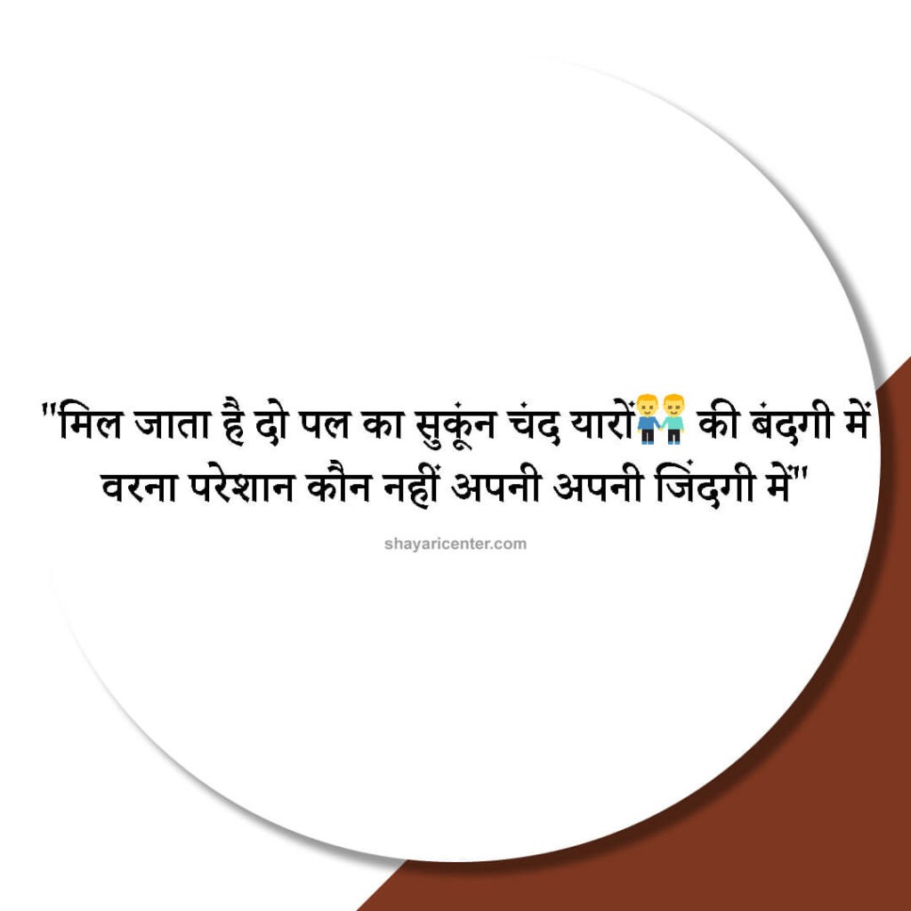 मिल जाता है दो पल का सुकूंन चंद यारों की बंदगी में वरना परेशान कौन नहीं अपनी अपनी जिंदगी में