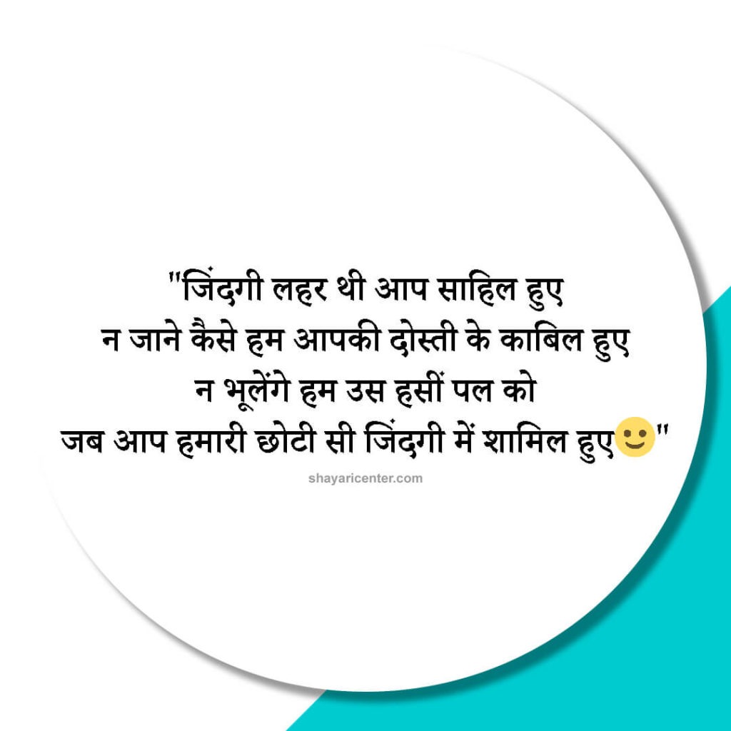 जिंदगी लहर थी आप साहिल हुए न जाने कैसे हम आपकी दोस्ती के काबिल हुए न भूलेंगे हम उस हसीं पल को जब आप हमारी छोटी सी जिंदगी में शामिल हुए