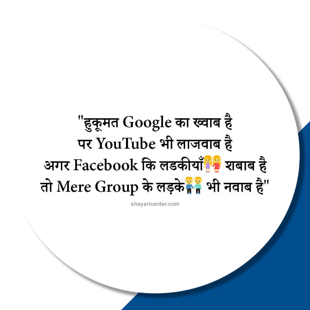 हुकूमत Google का ख्वाब है पर YouTube भी लाजवाब है अगर Facebook कि लडकीयाँ शबाब है तो Mere Group के लड़के भी नवाब है