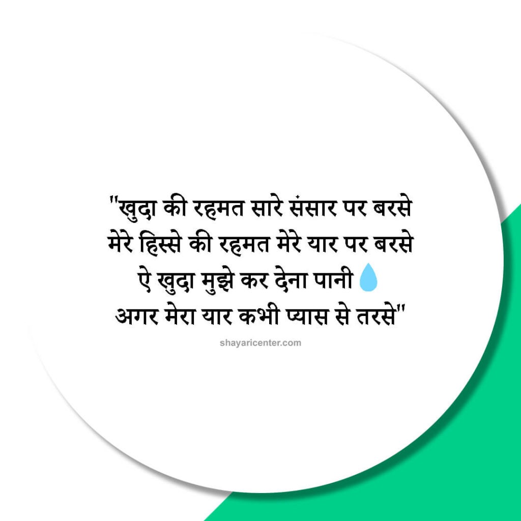 खुदा की रहमत सारे संसार पर बरसे मेरे हिस्से की रहमत मेरे यार पर बरसे ऐ खुदा मुझे कर देना पानी अगर मेरा यार कभी प्यास से तरसे