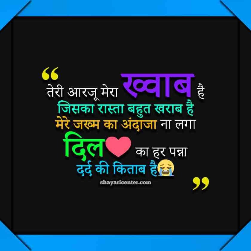तेरी आरजू मेरा ख्वाब है जिसका रास्ता बहुत खराब है मेरे जख्म का अंदाजा ना लगा दिल का हर पन्ना दर्द की किताब है