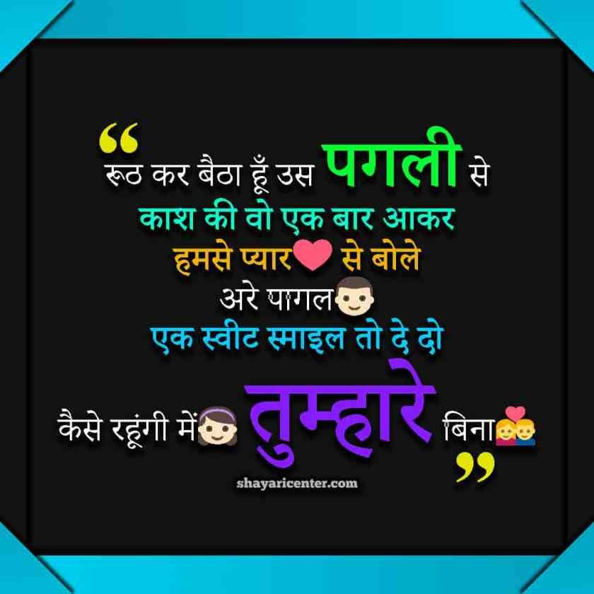 रूठ कर बैठा हूँ उस पगली से काश की वो एक बार आकर हमसे प्यार से बोले अरे पागल एक स्वीट स्माइल तो दे दो कैसे रहूंगी में तुम्हारे बिना