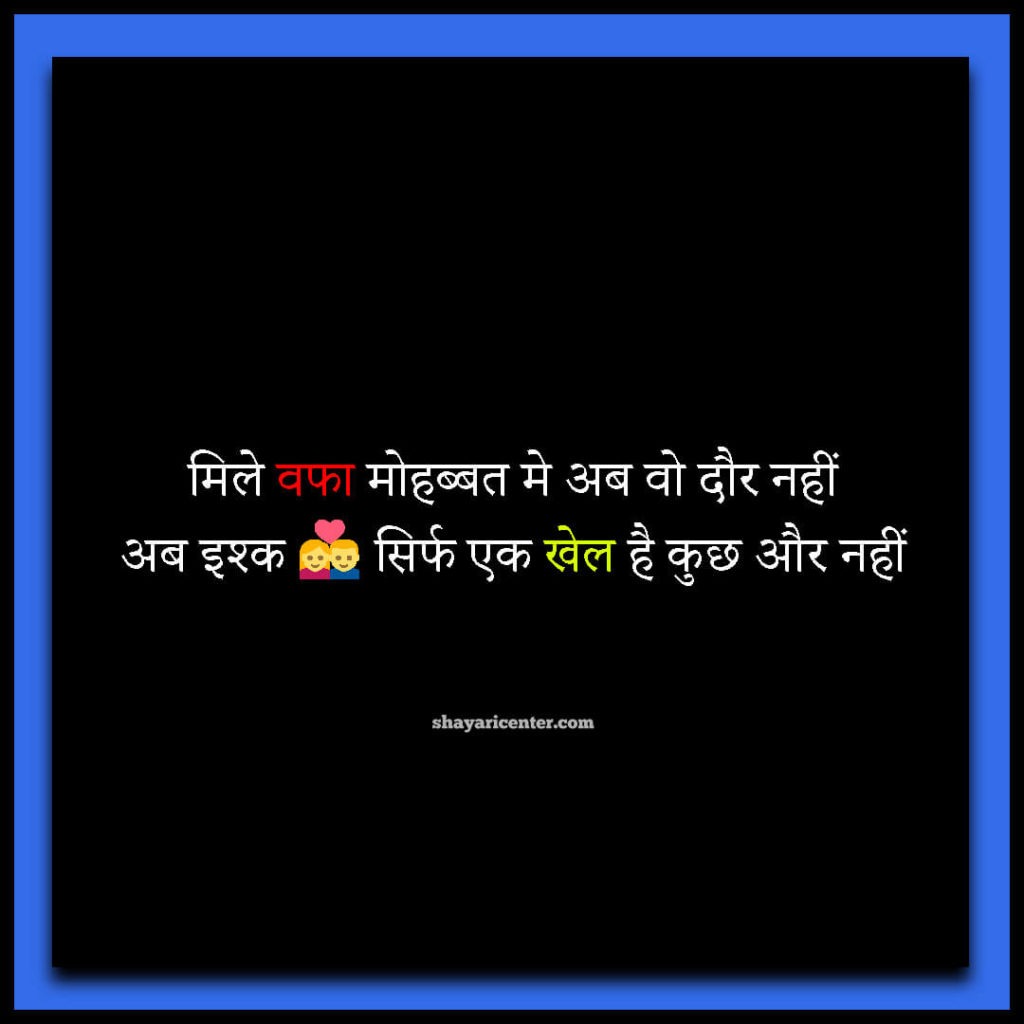 Heart touching sad shayari in hindi with image मिले वफा मोहब्बत मे अब वो दौर नहीं अब इश्क सिर्फ एक खेल है कुछ और नहीं