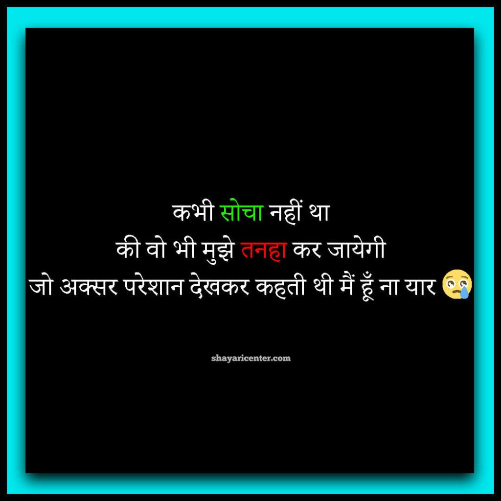 कभी सोचा नहीं था की वो भी मुझे तनहा कर जायेगी जो अक्सर परेशान देखकर कहती थी मैं हूँ ना यार