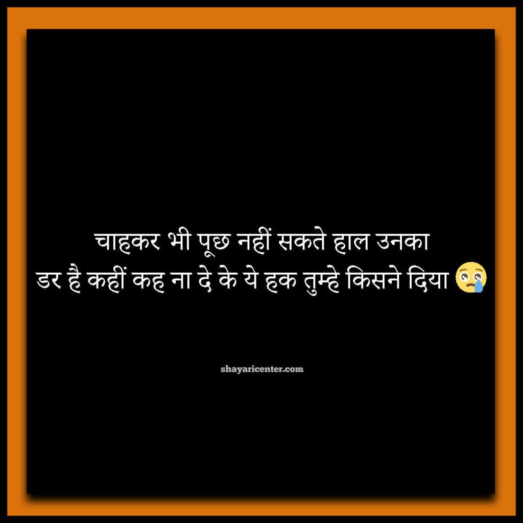 चाहकर भी पूछ नहीं सकते हाल उनका डर है कहीं कह ना दे के ये हक तुम्हे किसने दिया