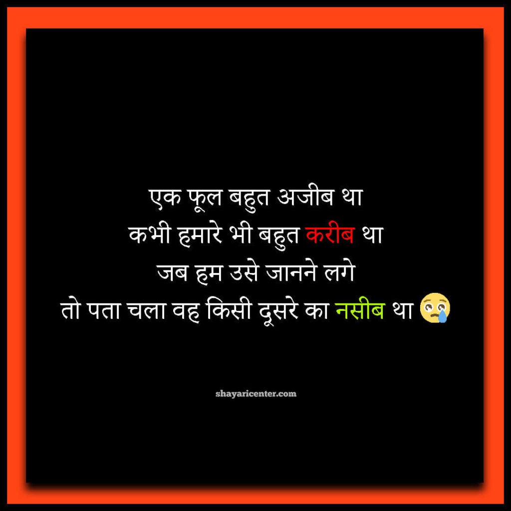 एक फूल बहुत अजीब था कभी हमारे भी बहुत करीब था जब हम उसे जानने लगे तो पता चला वह किसी दूसरे का नसीब था