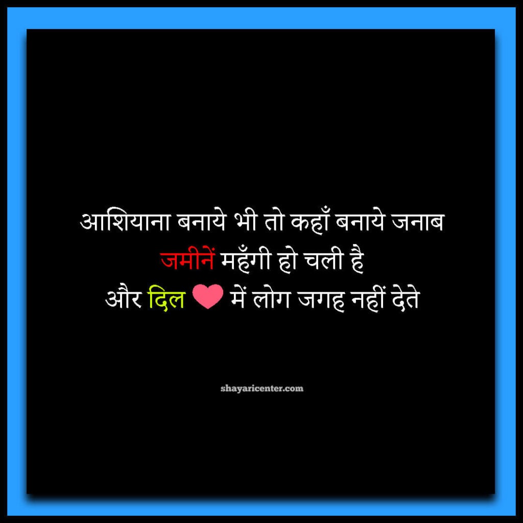 आशियाना बनाये भी तो कहाँ बनाये जनाब जमीनें महँगी हो चली है और दिल में लोग जगह नहीं देते