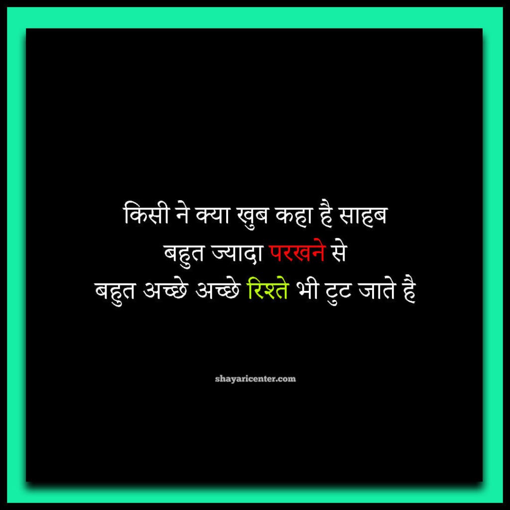किसी ने क्या खुब कहा है साहब बहुत ज्यादा परखने से बहुत अच्छे अच्छे रिश्ते भी टुट जाते है