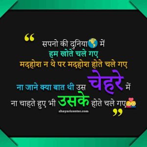 सपनो की दुनिया में हम खोते चले गए मदहोश न थे पर मदहोश होते चले गए ना जाने क्या बात थी उस चेहरे में ना चाहते हुए भी उसके होते चले गए